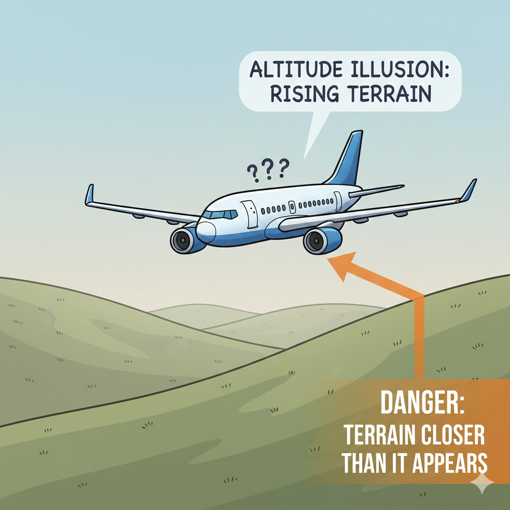 在這種情況下,即使飛行員操作正常,也可能在不知不覺中失去對地形的距離與高度判斷。