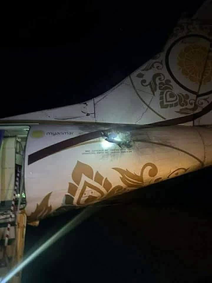 緬甸軍方相關單位說法指出:機上乘客與組員無人受傷,航機機身前後段均出現損傷,並發布 NOTAM 暫停密支那機場航班作業。