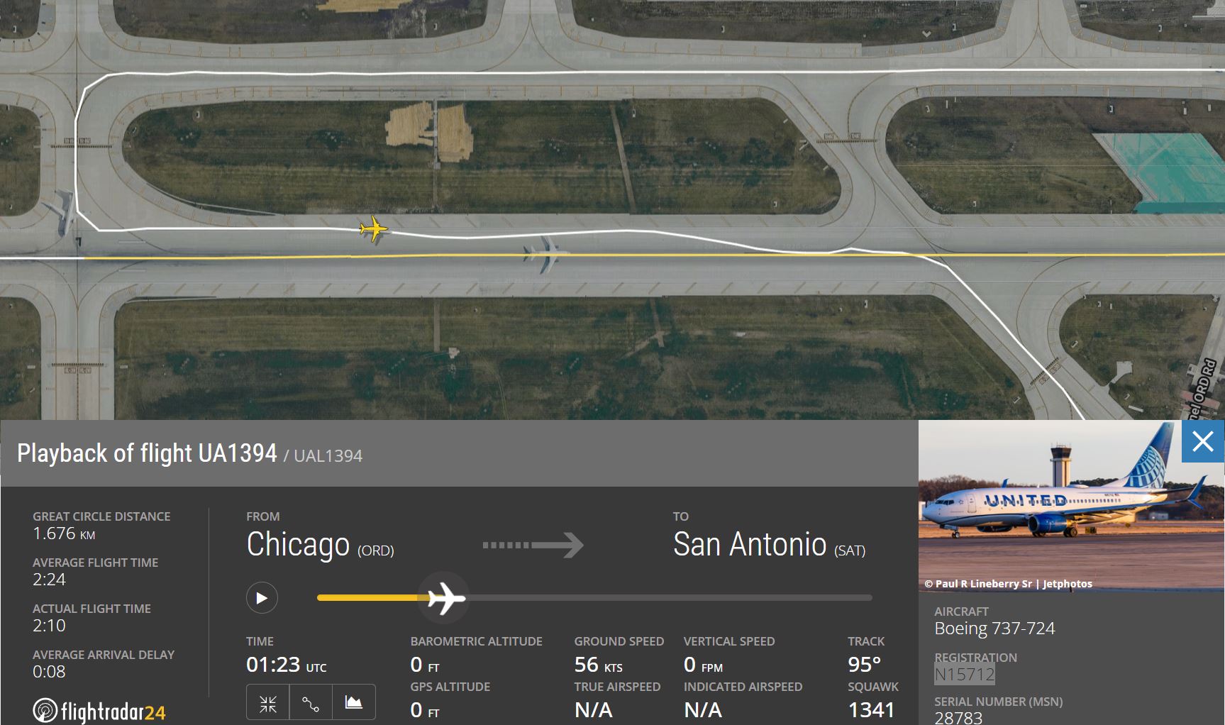 3、2026年3月19日-United Airlines航班 UA1394 (註冊編號 N15712)波音B737-724於芝加哥(ORD)機場起飛滾行未對準跑道中線中斷起飛事件
