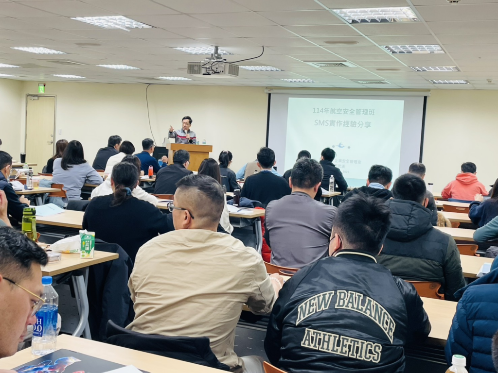 2026 年 1 月 29 日 作者: sys-adm 114年3月17-21日本會於民航局訓練教室辦理「航空安全管理班」 114年3月17-21日於民航局行政大樓訓練教室辦理完畢。5日課程內容重點:人為因素、組員資源管理、失事調查等11項專業課目,教育訓練時數30小時,國籍航空及會員單位派遣人員參加訓練,合計52人。