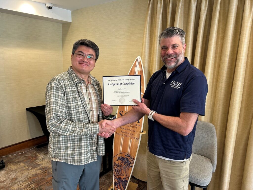 由會員單位國家運輸安全調查委員會副調查官蔡華生先生參加本次訓練課程,持續提升運輸事故調查專業知識與技能,強化運安會調查人員生還因素調查相關專業知識。訓練課程提供對飛航事故生還因素相關內容進行詳細分析,探討事故撞擊導致傷亡的因素,並檢視衝撞過程、生存空間與所造成傷害之關聯性,介紹研究防撞和降低傷亡技術和概念,分析並討論事故後火災及其後續可能的影響。