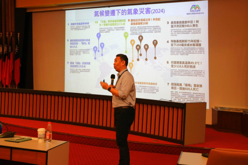 114年6月27日於民航局國際會議廳,協助中華航空氣象協會辦理「氣象災害預警研發與智慧化轉型」專題講習。本次講習邀請國家災害防救科技中心氣象組于宜強組長擔任講座,各航空業界派員參加,共同促進航安。