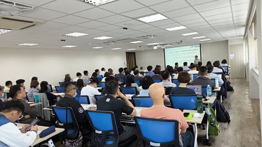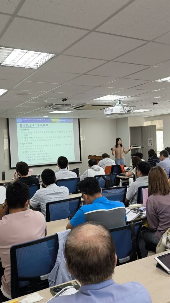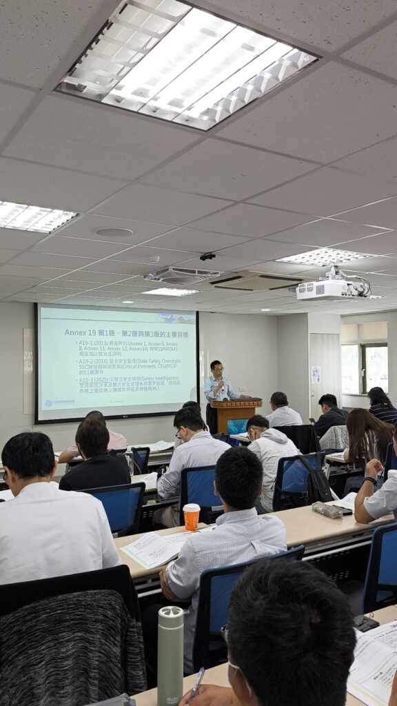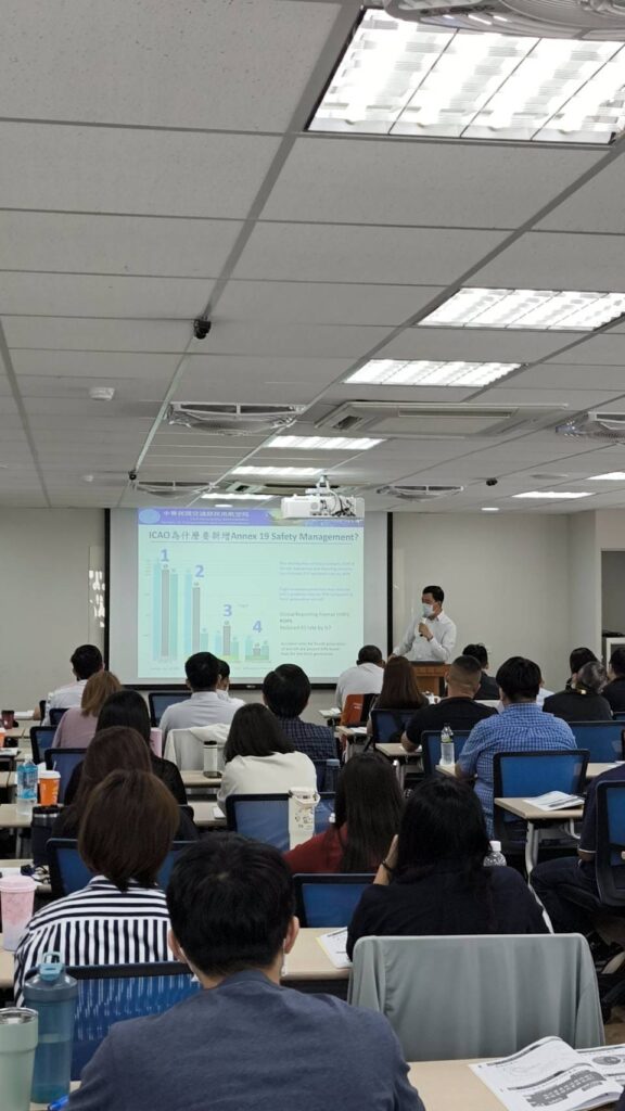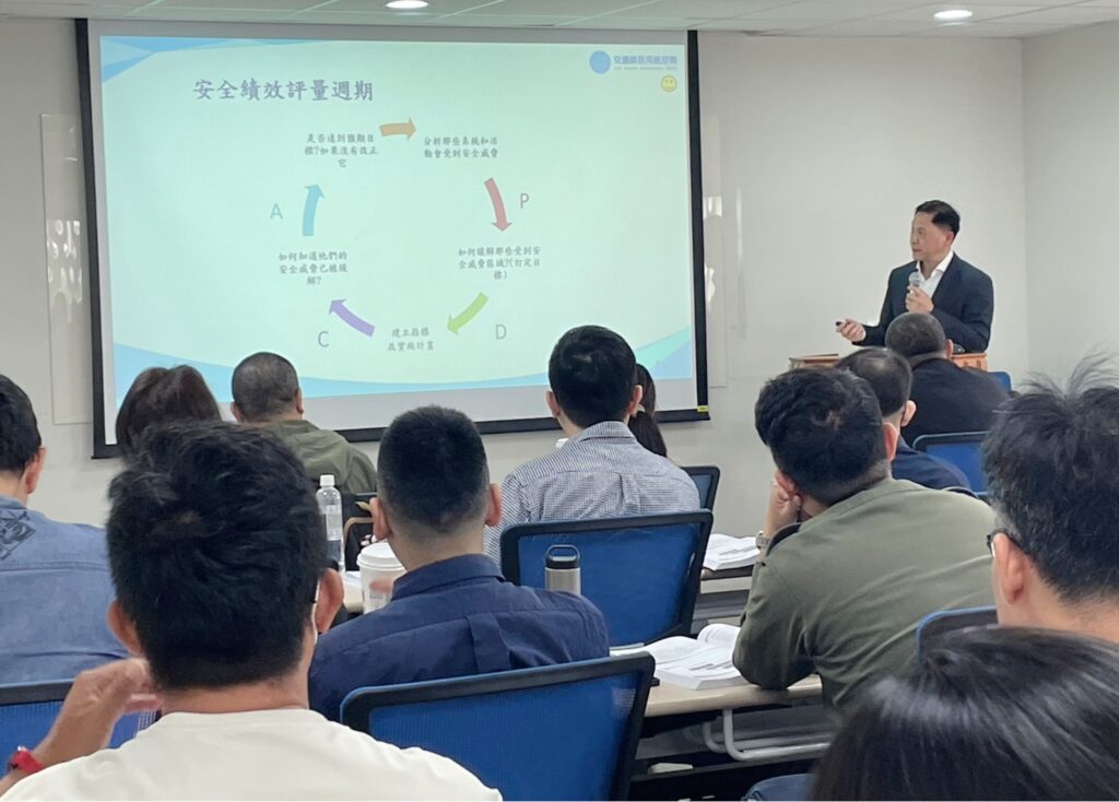 4日課程內容重點:SMS課程簡介、SMS法規、基礎安全概念、安全管理簡介、危害、風險、安全保證、SMS計畫與作業、安全績效指標SPI、BOWTIE實作與SSP/SMS關係及各階段工作等11項專業課目,教育訓練時數20小時,國籍航空及會員單位派遣人員參加訓練,合計64人。